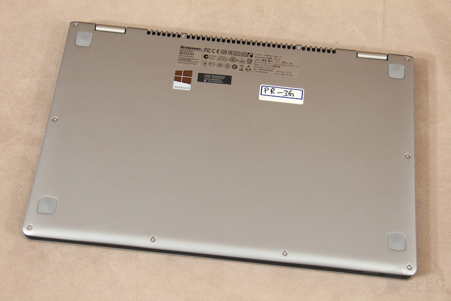 ส่วนของตัวเครื่องนั้นจะบางน่าใช้เพราะเป็น Ultrabook เน้นการพกพาออกไปใช้ทำงานนอกสถานที่ ดังนั้นต้องบางได้ระดับและน้ำหนักไม่มากเกินไป ทำให้ตัวเครื่องของ Lenovo IdeaPad Yoga 13 นี้ดูบางเบาเซ็กซี่ไปแบบหนึ่ง และต้องขอบคุณสำหรับการออกแบบตัวแท่นขาจอที่แข็งแรงและมีความแตกต่างที่ทำให้ตัวเครื่องสามารถพับกลับ 360 องศาได้อย่างแข็งแรงไม่เกิดปัญหาเวลาใช้งาน